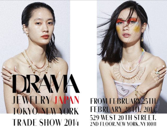 DRAMA JEWELY JAPAN TOKYO/NEWYORK TRADE SHOW 2014へ出展期間:2014年2月25日(火)-2月28日(金) 時間:11:00-18:00 場所:hpgrp GALLERY NEW YORK 住所:529 West 20th Street. 2nd floor. New York. NY 10011http://www.hpfrance.com/drama/tradeshow/